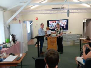 Author was honoured to receive a GSQ Honorary Life membership award in October 2026. L to R: Alistair Henderson, Helen Veivers, Bobbie Edes. Image by a GSQ member, copyright permission received.