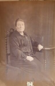 I do not know where or why the photos were taken – the earlier one is a copy of a copy that came to me from my mother’s cousin via my mother. This does not look like a studio photo, more a family photo. Her clothes, especially the long shawl/scarf, suggest a woman from a reasonably comfortable life. However, there is a sadness in her face. Looking at Mary in later life, there is a sense of calm resignation in her face. Again, this is a copy of a copy and looks as if it was a studio photo; it was probably taken a few years before her death in 1931. Perhaps the photo was taken to celebrate a special time in her life.